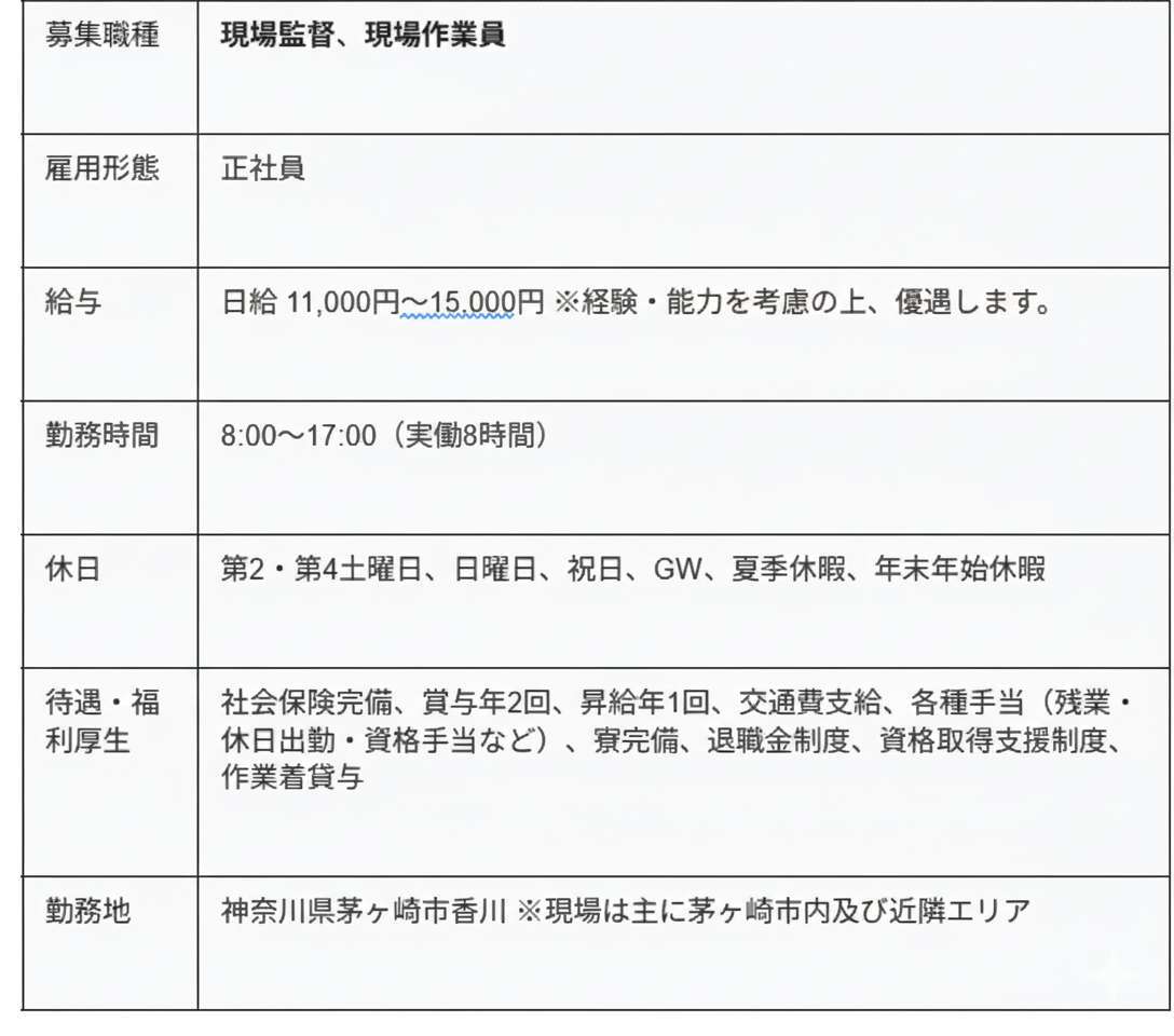 - チームワークを大切にする方: 現場は一人では成り立ちません。仲間と協力し、目標に向かって進める方。