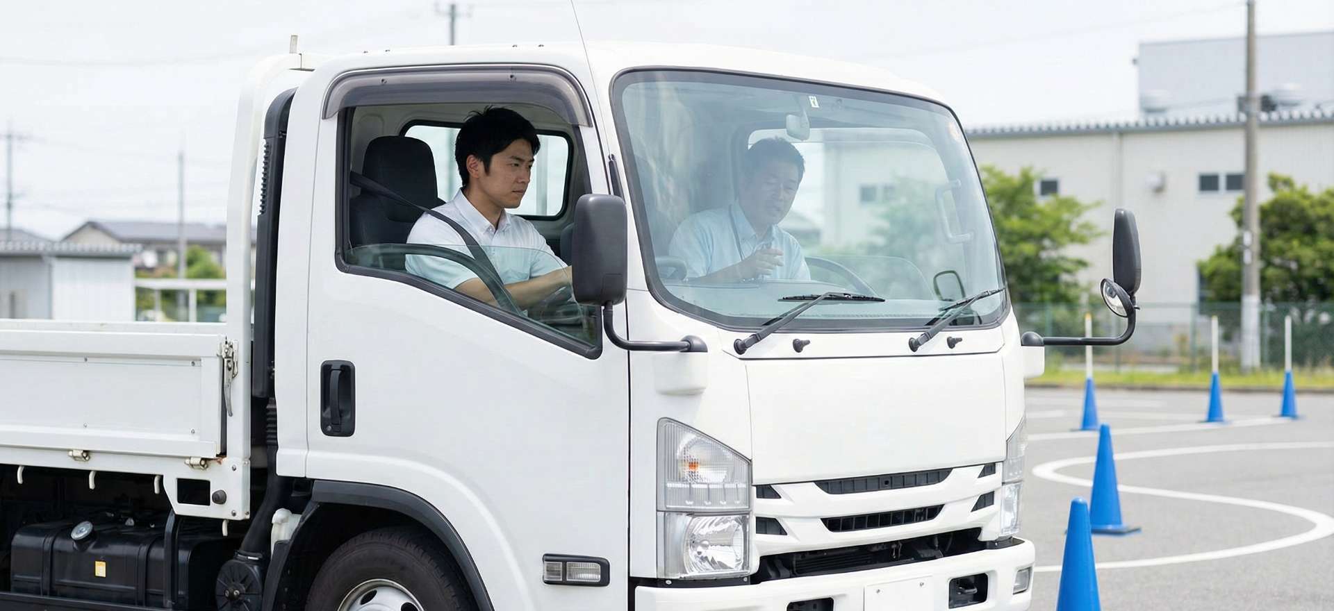 教習車は、通常の2tトラックよりも一回り大きい準中型教習車を使用します。 教習内容は以下のような項目が中心となります。