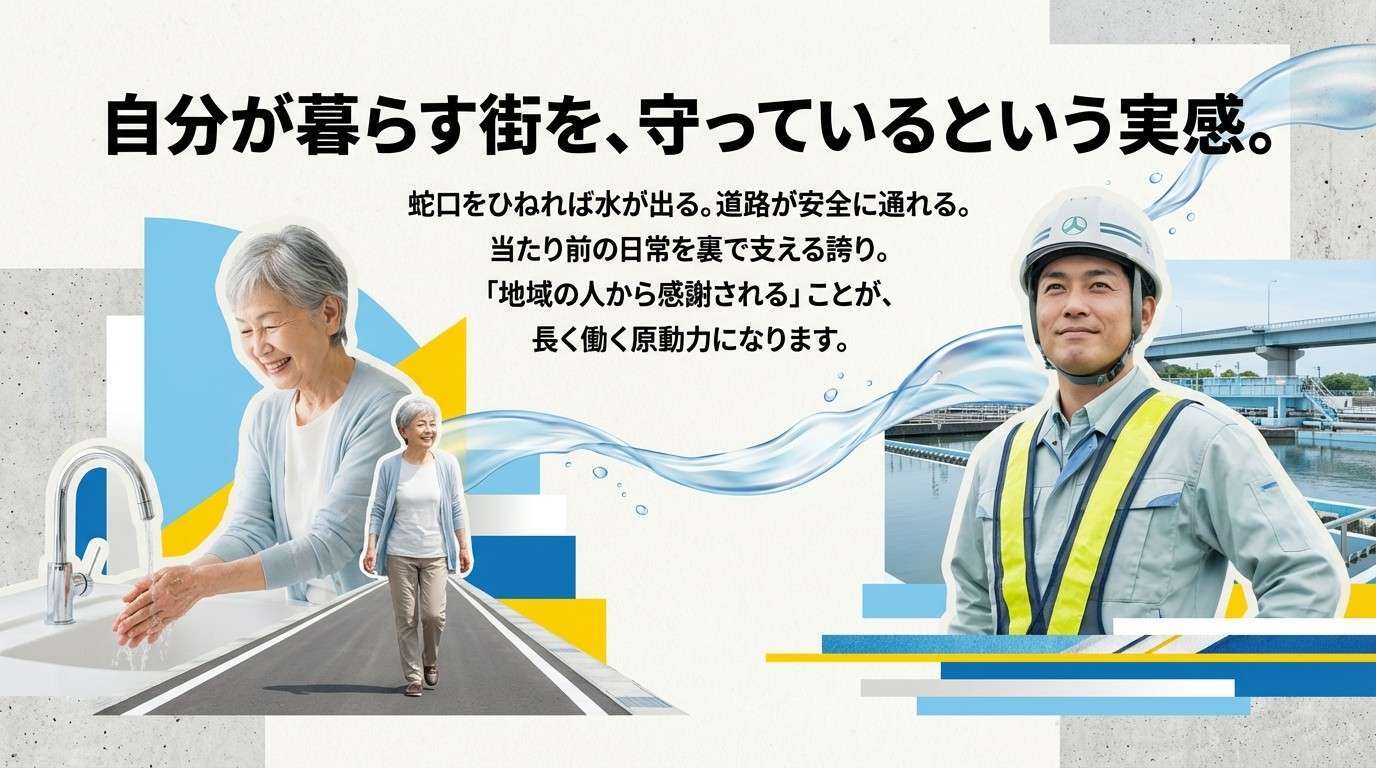 例えば、蛇口をひねれば水が出る、道路が安全に通れる。当たり前の日常を裏で支える仕事には、単なる作業以上の大きな社会的意義があります。